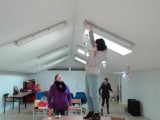 Ученики русских классов подготовили красивые звёздочки для украшения зала, а накануне праздника волонтёры старательно украсили зал новогодними атрибутами.